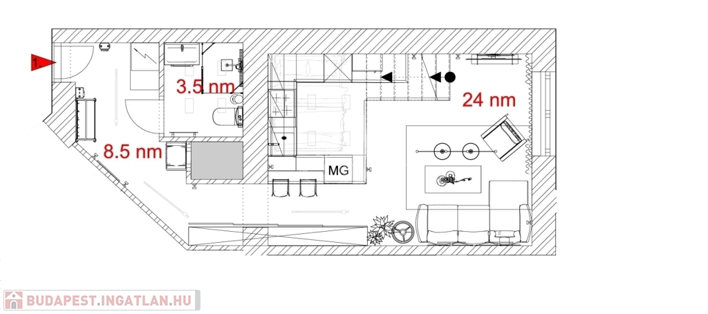 • 1. emelet, galériás kialakítás