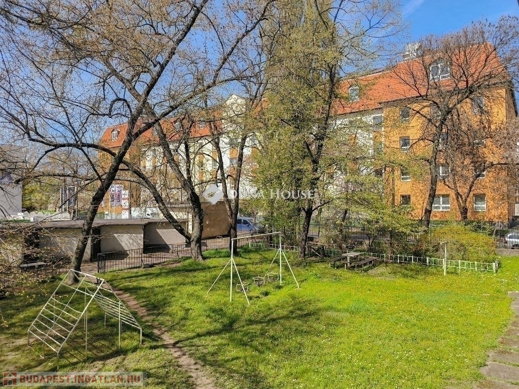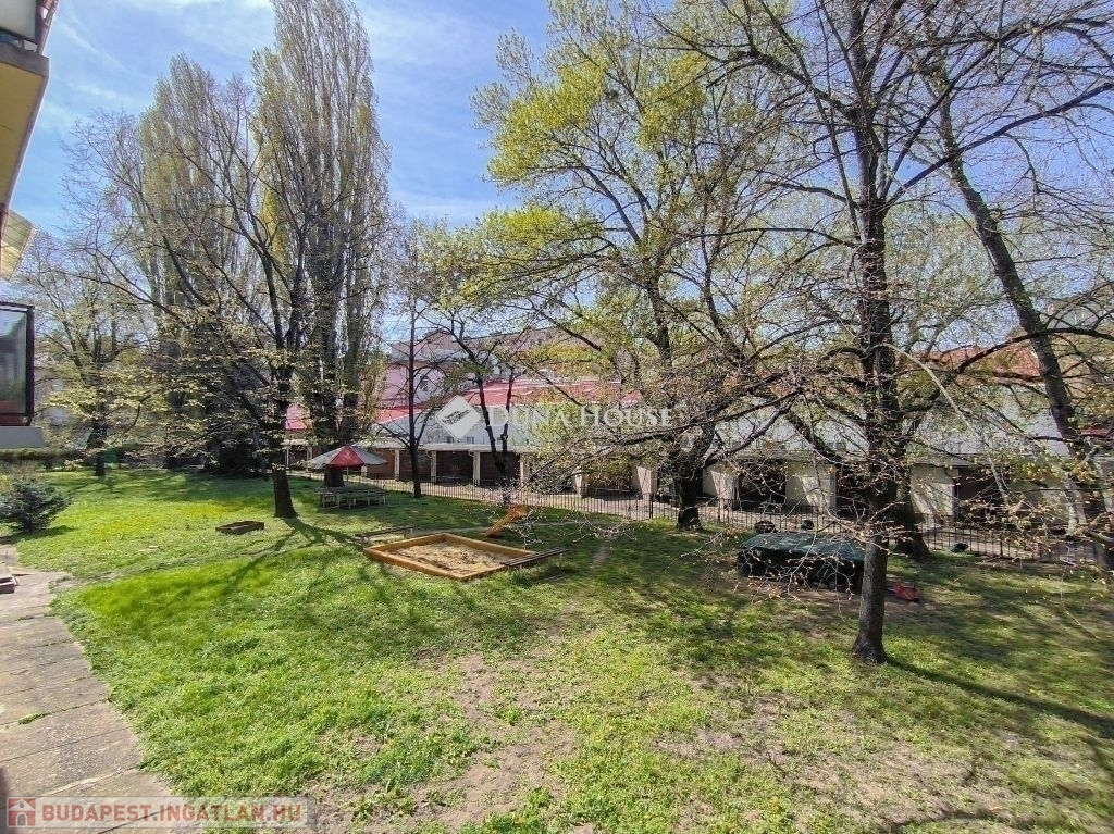 A házhoz közös kert is tartozik. A környék ellátottsága kiváló, a közlekedés több villamos- és buszjárattal gyors.