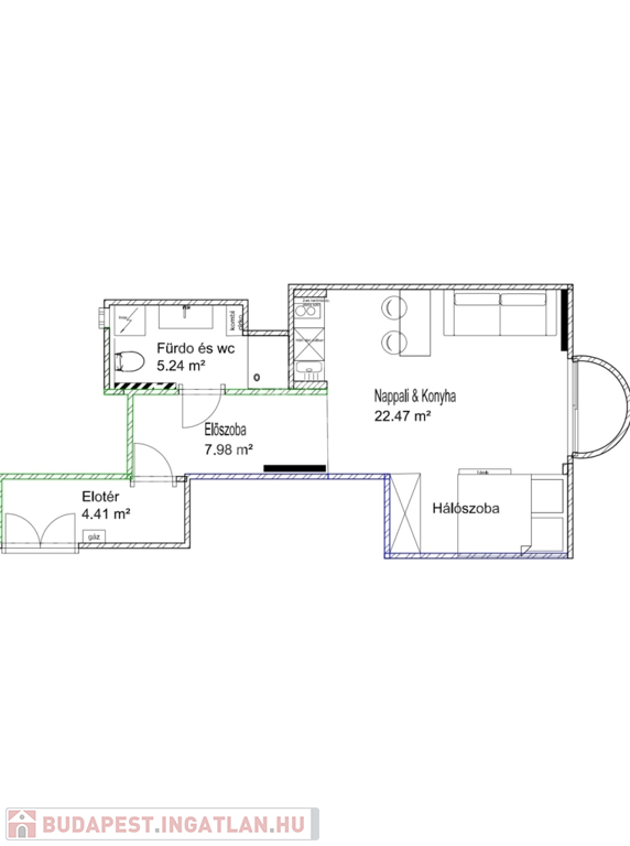 • Világos, napfényes elrendezés, nappali + hálórész