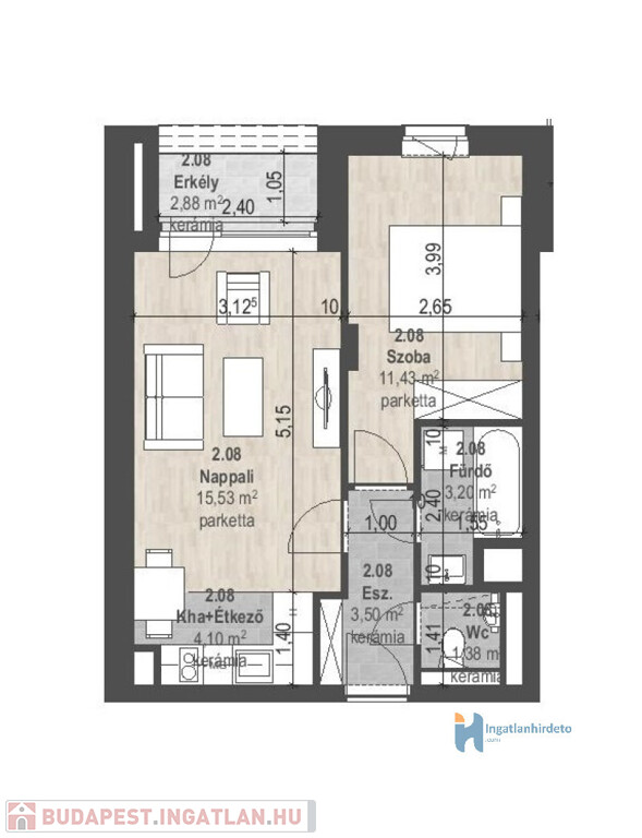 - fűtése: levegős hőszivattyús rendszer (padlófűtés, Fan-coil hűtés)