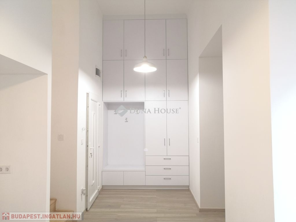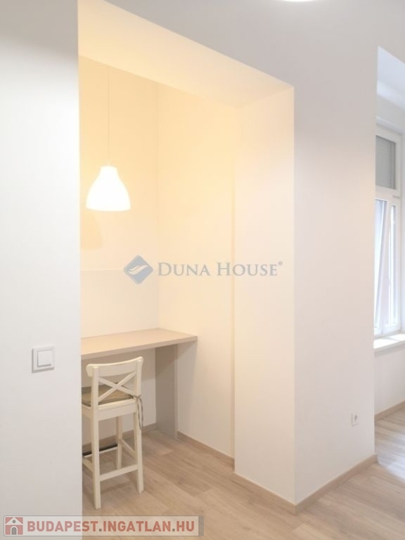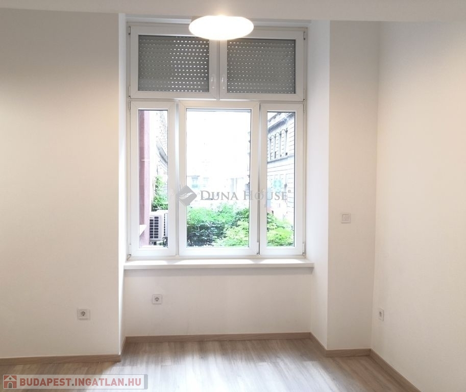 FRISSEN, TELJES KÖRBEN, BELSŐÉPÍTÉSZ TERVEI SZERINT FELÚJÍTOTT, AZONNAL BIRTOKBAVEHETŐ APARTMAN A VÍGSZÍNHÁZ KÖZVETLEN KÖZELÉBEN! XIII. kerület, Újlipótvárosban, a Vígszínháztól mindössze 80 lépésnyire, szép állapotú, egyedi hangulatú polgári társasházban eladó egy félemeleti, zöld kertre néző, kifejezetten világos, 44m2 lakóteret kínáló, nappali + hálóhelyiséges, frissen felújított, belsőépítész tervei szerint átalakított, akár azonnal birtokba vehető apartman. Az ingatlan felújítása során nagy belmagasságát helyenként extra szint kialakításával használták ki. Tágas, amerikai konyhás nappalijából ennek köszönhetően egész szobányi hálóhelyiség nyílik, a galériaszinten, ahol a belmagasság szintén lehetővé teszi, hogy normál hálóhelyiségként használjuk. A már megnevezett helyiségeken kívül tágas fürdőszoba+wc, egy egész falnyi beépített gardróbbal felszerelt előszoba, és a nappaliból nyíló étkezősarok találhatóak még a lakótérben. A bejárat előtt egy kifejezetten praktikus, zárt előtér található, ahol egy hatalmas beépített szekrény is megtalálható, kulturált, rendezett tárolási lehetőséget biztosítva az ingatlant használók számára, akár kerékpár, roller biztonságos parkolására is alkalmas. A helyiség mosókonyhaként is hasznosítható, melyhez mosógépkiállás és mosógép is telepítésre került. Állapotát tekintve az ingatlan teljesen felújított, újszerű állapotban van, a felújítás óta még senki sem használta, új tulajdonosa is ebben az állapotában veheti birtokba. A felújítás során szó szerint mindent kicseréltek a lakótérben, műszaki és esztétikai szempontból egyaránt. A felszereltséget a teljes gépesítésű (sütő, főzőlap, elszívó, mosogatókép, hűtőszekrény) konyhabútor mellett hatalmas beépített gardrób szekrények, dupla kapacitású radiátorok, hűtő-fűtő klímaberendezés, a galériaszinten kilakított beépített gardrób is emelik. A fűtést és a melegvíz ellátást elektromos cirkó biztosítja, mely szintén újonnan lett felszerelve. A nappali hatalmas ablakfelülettel rendelkezik, melynek köszönhetően kifejezetten világos. Amennyiben mégis árnyas környezetre vágyunk, a nyílászáró elektromos redőnnyel is fel lett szerelve, így az optimális fényviszony gombnyomásra beállítható. A társasház tiszta, rendezett, kívül-belül szép állapotak örvend. Számos műszaki felújítás is megvalósult az épületben. A lakóközösség kiváló, a közös területeket tisztán és rendben tartják. A környezet ellátottsága kitűnő, üzletek, oktatási intézmények, szolgáltatások, kikapcsolódási, sportolási lehetőségek karnyújtásnyira találhatóak. A Vígszínház mindössze 80 lépésnyire, a Westend bevásárlóközpont pár perc sétányira található. A tömegközlekedés szintén kitűnő, a közeli Jászai Mari térről és Nyugatiból többek között az M3 metró, a 4-6-os villamos, 2-es villamos, és számtalan autóbusz, trolijárat biztosít a város szinte minden pontjával könnyű összeköttetést. Irányár: 79,9 M Ft