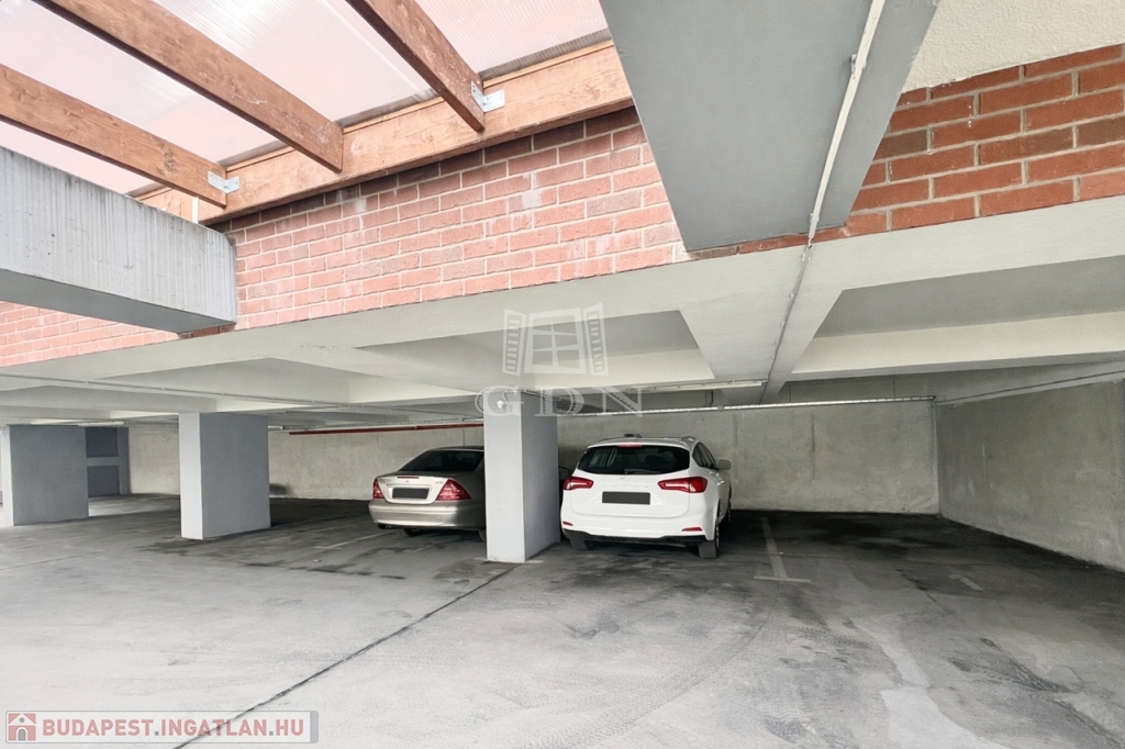 A lakáshoz tartozik egy fedett kocsibeálló a társasház földszintjén, amely elektromos kapun keresztül közelíthető meg. A garázs a lakással együtt megvásárolandó, vételára: 5.750.000 Ft.