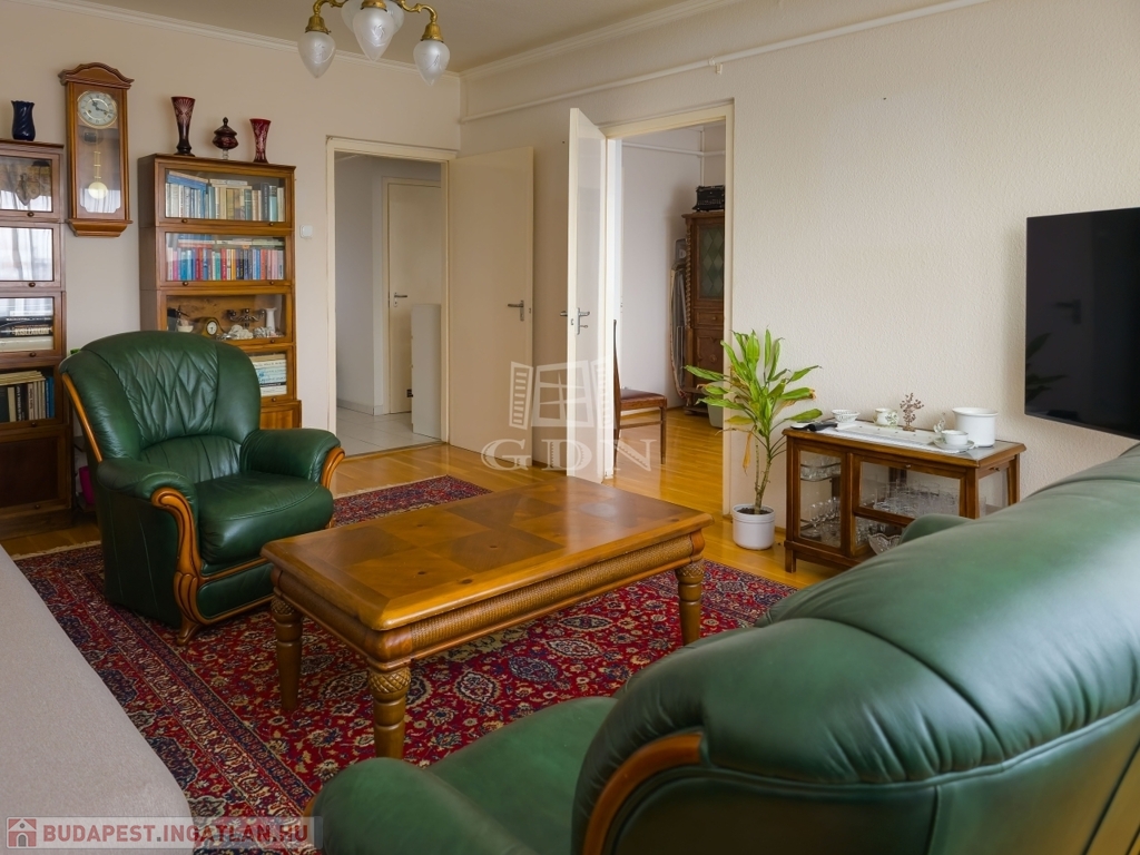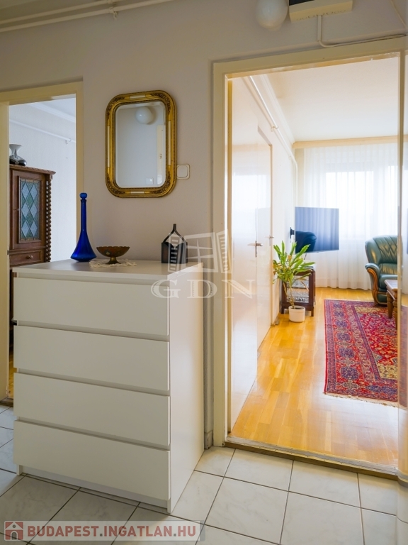 A lakás világos, csendes, és a magas emeletnek köszönhetően gyönyörű kilátás nyílik a budai hegyekre.