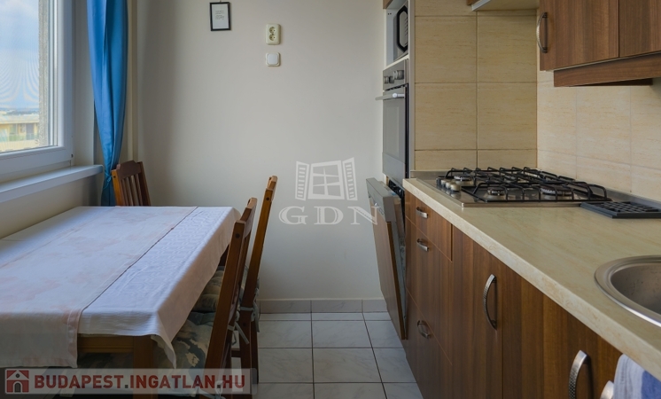 A Duna-part közelében, a közkedvelt Kárpát utcában kínálunk eladásra egy 10. emeleti, panorámás, 2 szobás, jó állapotú lakást.