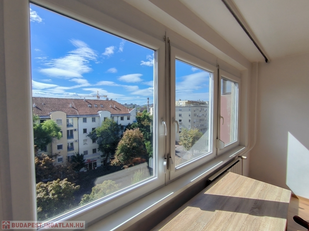 Eladásra kínálok XIII. kerületben Angyalföldön az Országbíró utcai lakótelepen egy 67 m2-es 3 szobás 5. emeleti, napfényes és világos, erkélyes, klímával ellátott panel lakást!Az ingatlan műszakilag teljesen felújított. A lakás D-i tájolású, egész nap napfényes és világos, emellett a műanyag ablakok redőnyösek és jól szigetelnek, így télen meleg, nyáron pedig könnyen árnyékolható.Nagyon jó elrendezésű, élhető terei biztosítják a maximális kényelmet.A nappali és az egyik szoba ablaki utcára néznek, déli tájolású és a kisebbik szobához van egy erkély is, ahol élvezheted a reggeli kávédat.A harmadik szoba és a konyha ablakai pedig egy csendes, zöld parkra néznek.A közlekedőben végig beépített gardrób szekrény van. A ház lakóközössége barátságos a társasház rendezett.Alacsony rezsi:A távfűtést egyedi mérőóra szabályozza, így csak annyit fizet amennyit fogyaszt.Kiváló infrastruktúra:32, 120,105-ös buszok valamint a 14-es, 1-es villamos pár percnyire van.Az Árpád híd és a Margitsziget is könnyen elérhető.A ház mögött parkosított, zárt játszótér, közelben óvoda, iskola, rendelő, kórház, Spar, Lidl, Rossmann.Ide csak költözni kell!Ne maradj le róla! Hívjon még ma, és nézzük meg együtt ezt a remek lehetőséget!
