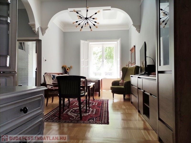 Az ingatlan nemrégiben mindenre kiterjedő felújításon esett át. Az előszoba és a szoba különleges mintázatú, új fa parketta borítást kapott, a többi helyiség fa hatású járólappal burkolt. Az eredeti ablakokat és spalettákat felújították, a négyrétegű thermo üvegezésnek köszönhetően a körút zajából semmi nem érzékelhető. A fűtést a mennyezetre szerelt infra panelek biztosítják, a melegvíz- elllátás villanybojlerrel történik. A belmagasság 3,47 m. A közös költség 12.000 Ft.