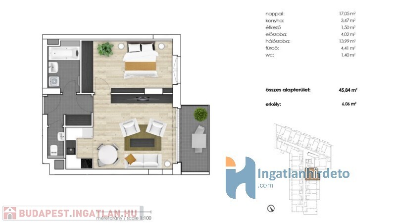 Elhelyezkedése: Társasház Emeleti elhelyezkedés: Emeleten Emelet száma: 5 Épület emeleteinek száma: 7 Tájolása: észak-keleti tájolású Állapota: új Komfort besorolása: összkomfortos Építési éve: 2024 Alapterülete: 46 m2 Szobák száma: 2szoba Közművek: Víz, Villany, Csatorna Fűtés típusa: Padlófűtés, Fan-coil Homlokzat állapot: új Építési mód: Tégla Tető formája: Lapos Parkolási lehetőség: Garázsban Kilátás: Udvari kilátás Napelem: Nincs Jellemzői: Alacsony rezsi, Csendes környék, Jó közlekedés Energetikai besorolás: A++ Egyéb jellemzők: Erkély, Lift Tv, Internet: Kábeltévé, Internet Közelben: Iskola, Óvoda, Közelben metró, Villamos, Autóbuszállomás, Helyi autóbuszállomás, Orvosi rendelő, Bolt, Gyógyszertár, Postahivatal, Vendéglátó egység, Autópálya Terhelések: Tehermentes ingatlan Eladásra vonatkozó információk: Kizárólag magánszemélyek jelentkezését várjuk