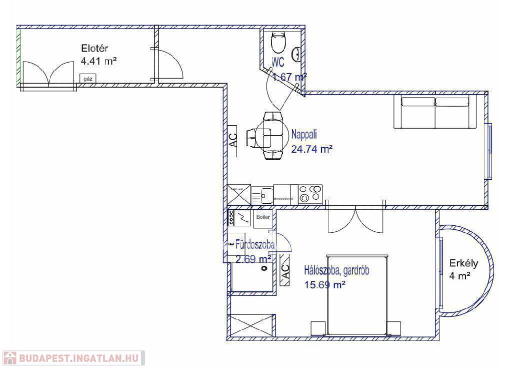 Az ingatlan 47 nm plusz 4 nm erkély.