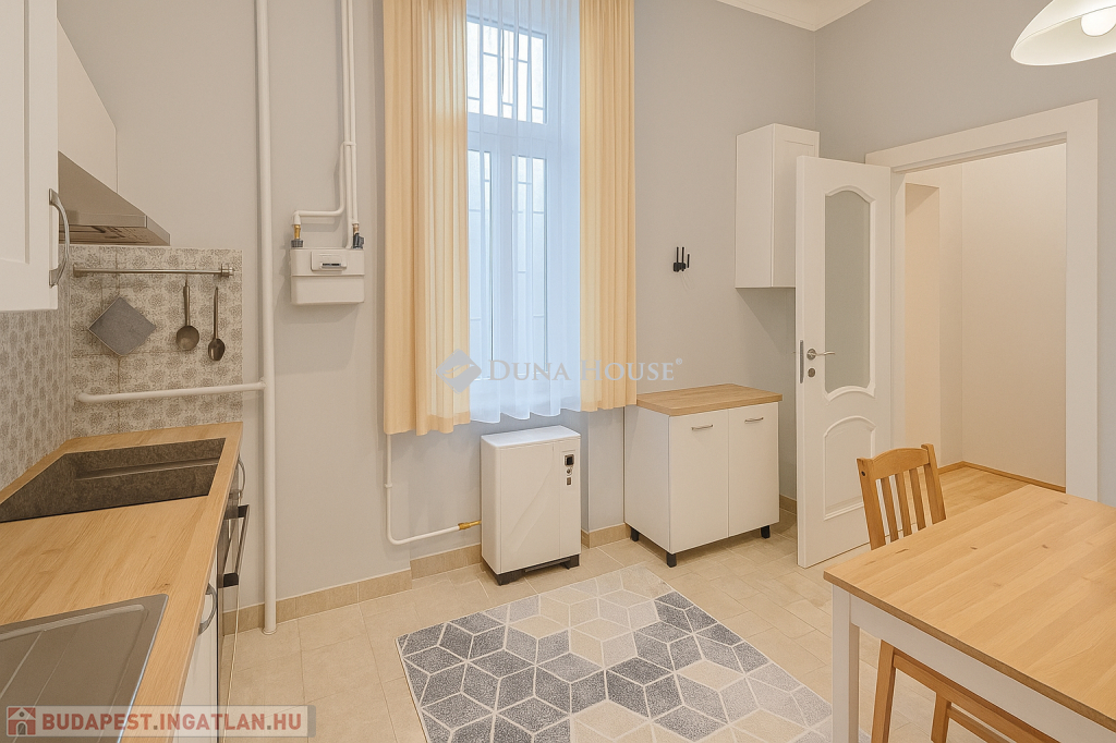 A lakásról készült fényképeken AI segítségével tüntettük el a személyes tárgyakat, ettől függetlenül a képek a valóságot tükrözik.