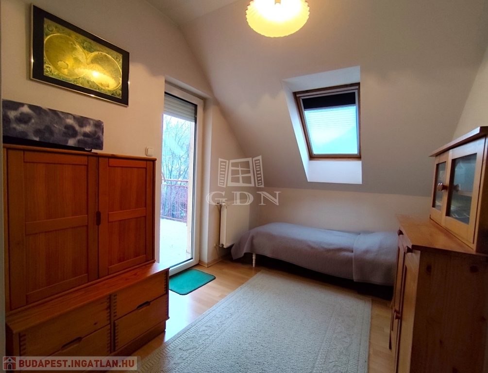 A tetőtéri szint igazi pihenőzóna. Jelenleg egybenyitott hálótérként funkcionál, de két külön gyerekszobává vagy háló + gyerekszoba kombinációvá is könnyen visszaalakítható.