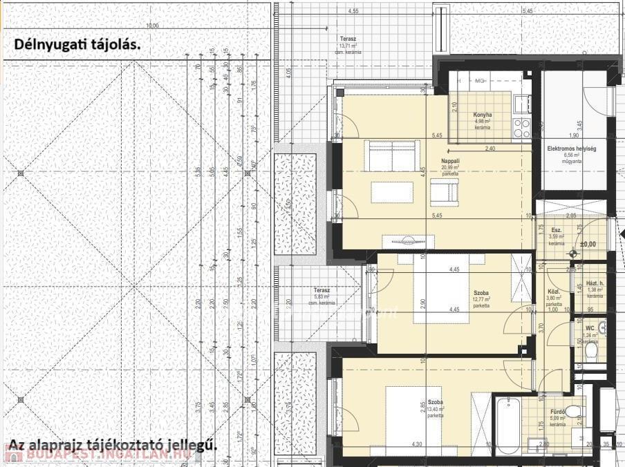 Minden ingatlan 1,2 illetve 3 terasszal rendelkezik, a földszinti lakásokhoz
