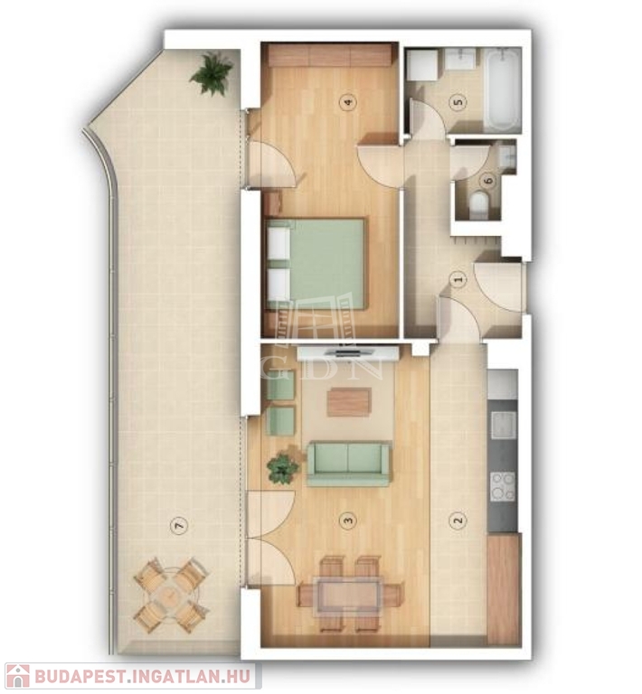 Ez a lakás nappali+1 hálós, 59nm alapterületű+ tartozik hozzá egy 29nm-es terasz is.