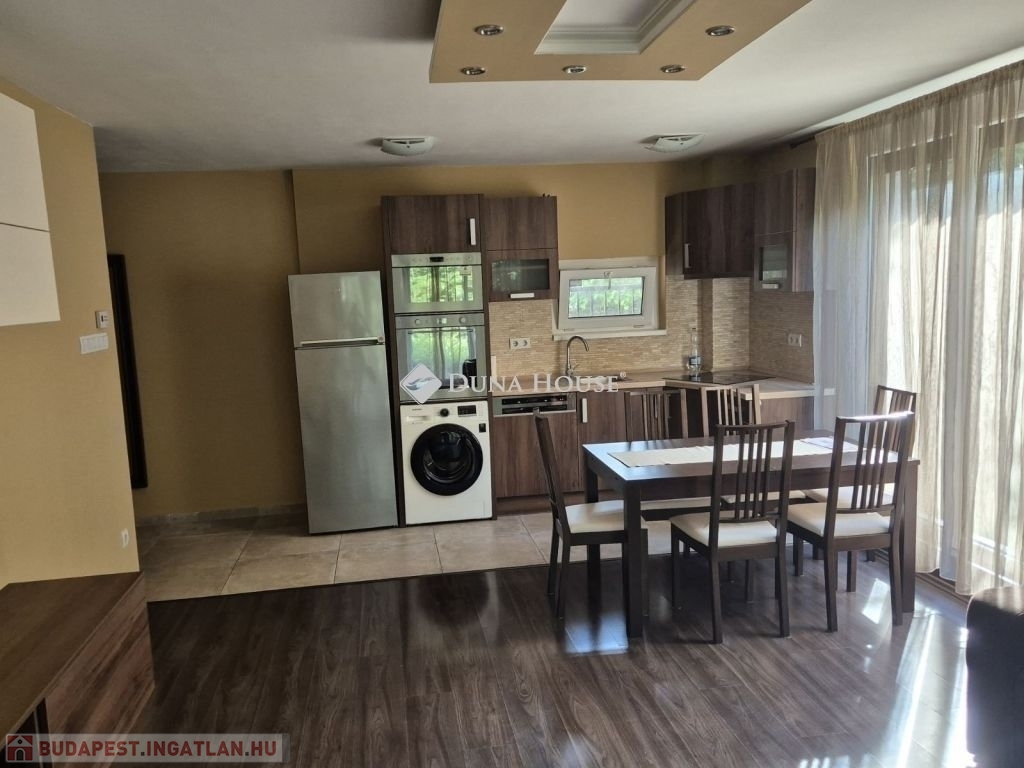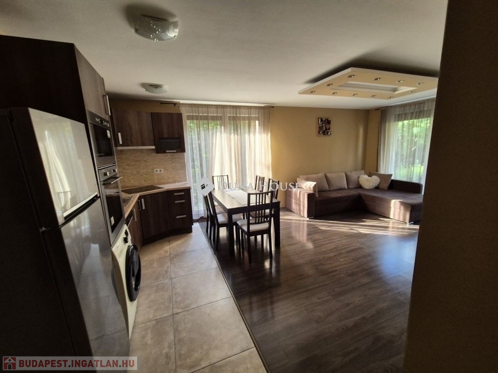 Alsórákos kedvelt, rendezett, társasházakkal kialakított, zöldövezeti részén, csendes mellékutcában eladó egy 2015-ben magas minőségben épült 7 lakásos társasház földszintjén található, tehermentes, 67 m2-es, amerikai konyhás nappali + két külön nyíló hálószobás, dupla klímás lakás terasszal és kertkapcsolattal. A remek lehetőségeket nyújtó kertrész - folyamatosan kertész által gondozott, osztatlan közös tulajdonú, de mivel a lakás közvetlen kertkapcsolata, így csak a lakásban élők használják - kiváló lehetőség kisgyerekkel, háziállattal, vagy azok számára, akik a városi életvitelük kapcsán egy családi házat nem szeretnének fenntartani, de vágynak egy kis saját zöld területre. Vételár részét képezi a gépesített konyhabútor, a teremgarázs beálló és a tároló. A beálló az átlagosnál nagyobb méretű és akár szeparálható is, a tároló pedig közvetlenül a beálló mögött helyezkedik el.
