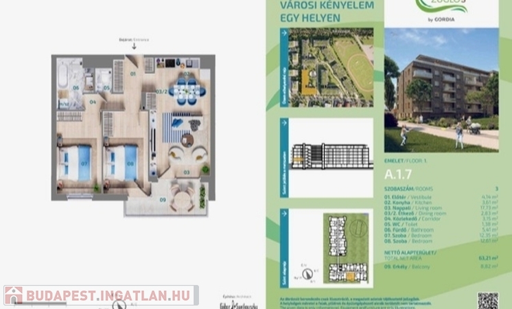 -Nettó alapterület: 63,21 m2