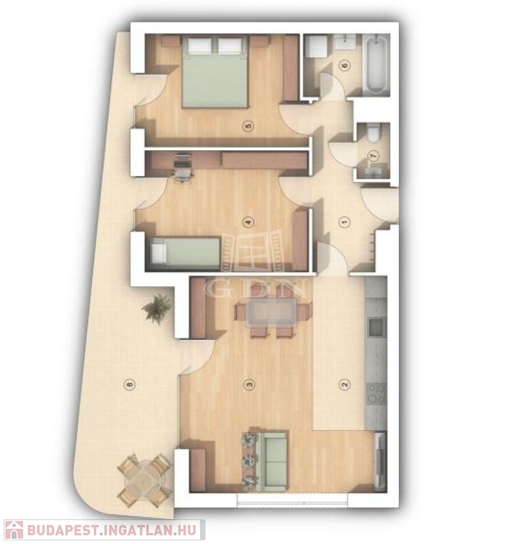 Ez a lakás nappali+ 2 hálós, 74nm alapterületű+ tartozik hozzá egy 22nm-es terasz is.