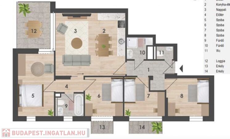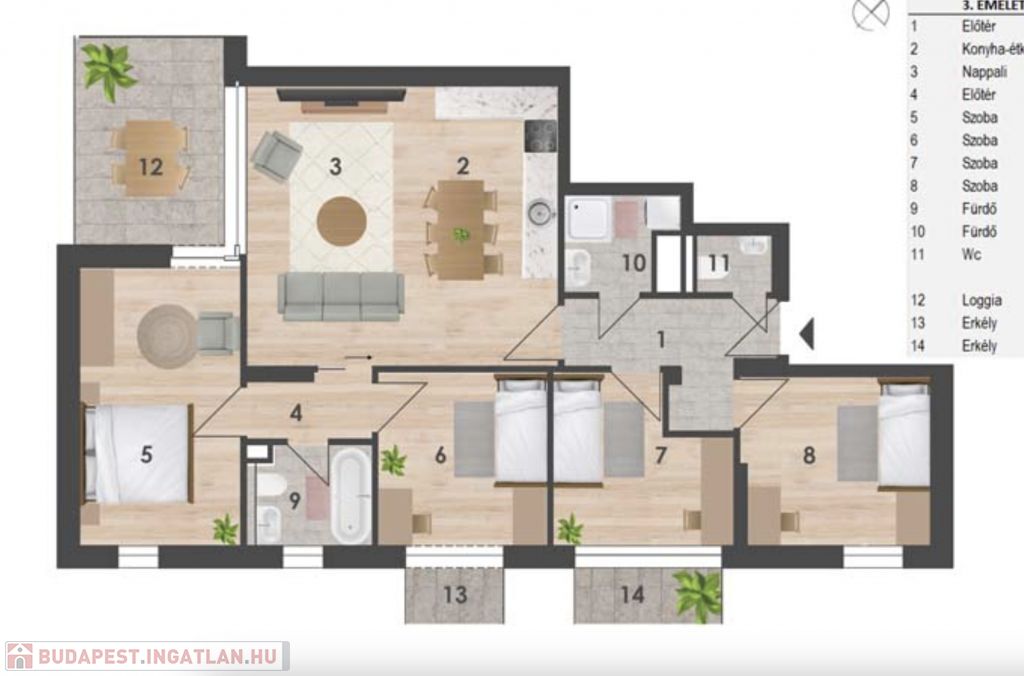 - 1–5 szobás elosztás, 30–130 m²-es alapterülettel