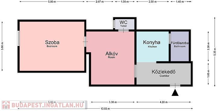 A lakás a Nagy Lajos király útjához közel, a csendes Angol utcában helyezkedik el, egy jó állapotú társasházban.
