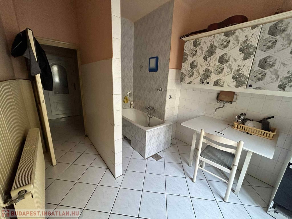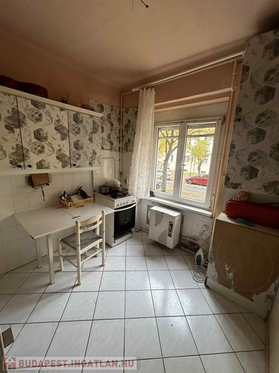 Eladó a XIV. kerületben, a Kalapács utcában, egy 3 emeletes lift nélküli tégla társasház földszintjén egy 41 m2-es, 1+1 félszobás lakás.