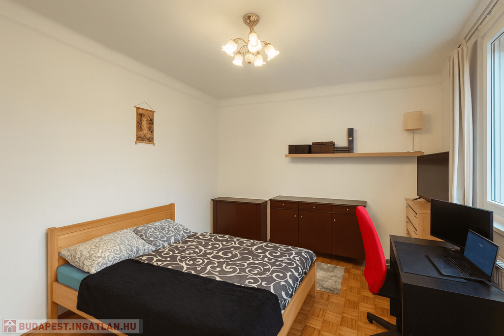 A lakásban található berendezési tárgyak és műszaki eszközök megvásárlása kötelező, külön 2,5 millió forintos ellenérték fejében. A vételár tartalmazza a teljes bútorzatot, a két éve vásárolt Electrolux sütőt és mosógépet, valamint a hirdetésben látható további bútorokat. Az ágy helyett egy új, a vevő által kiválasztott sarokkanapé, vagy ágy kerül a lakásba.