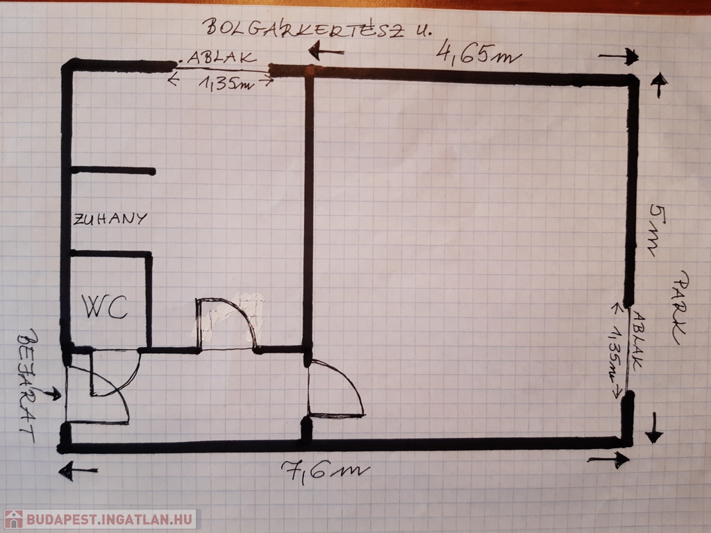 ELADÓ a XIV. kerületben, Zuglóban, a Bolgárkertész utca 6. szám alatt, 4 szintes téglaházban, parkos környezetben, egy 38 nm-es, jelenleg egy szobás, 2. emeleti, lakás. A szoba (23 m2) laminált parkettás, a többi helyiségben hidegburkolat van.