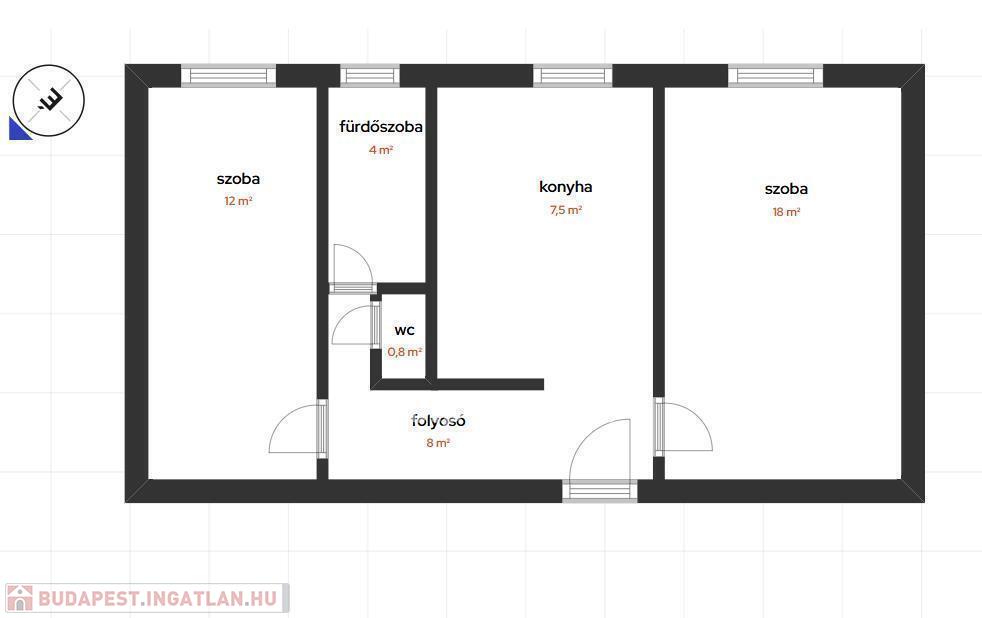 A szobák KÜLÖN NYÍLNAK, ablakai ZÖLD kertre néznek, az ingatlan délkeleti tájolású.