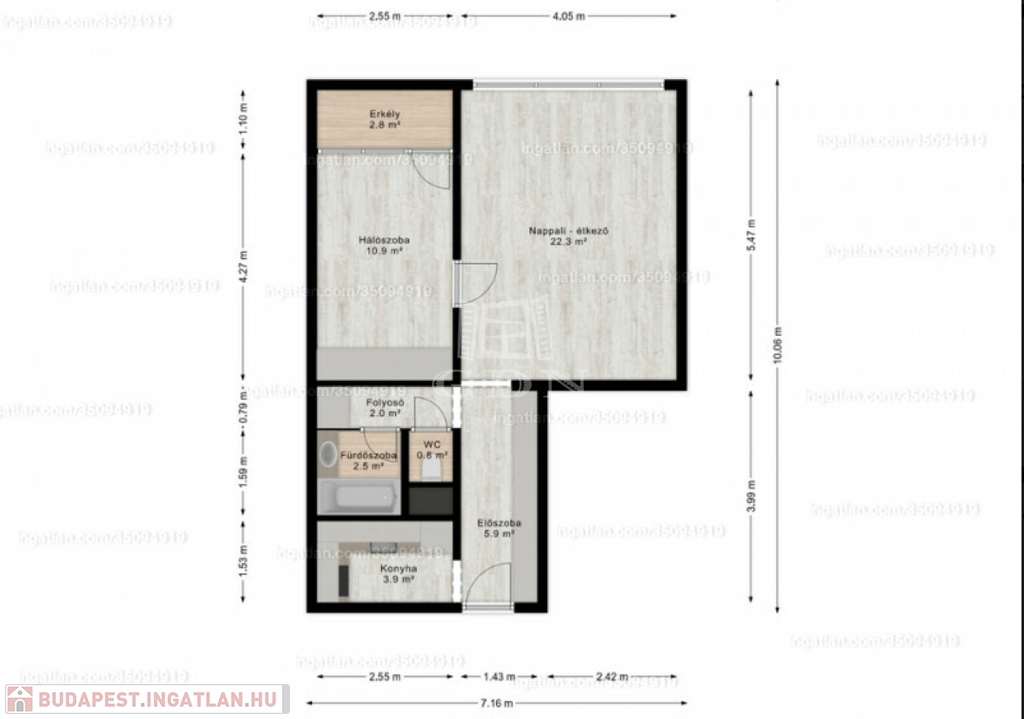 A lakáshoz tartozik egy 3 m²-es erkély is, amely tökéletes hely a reggeli kávé élvezetéhez vagy csak egy kis friss levegőhöz.