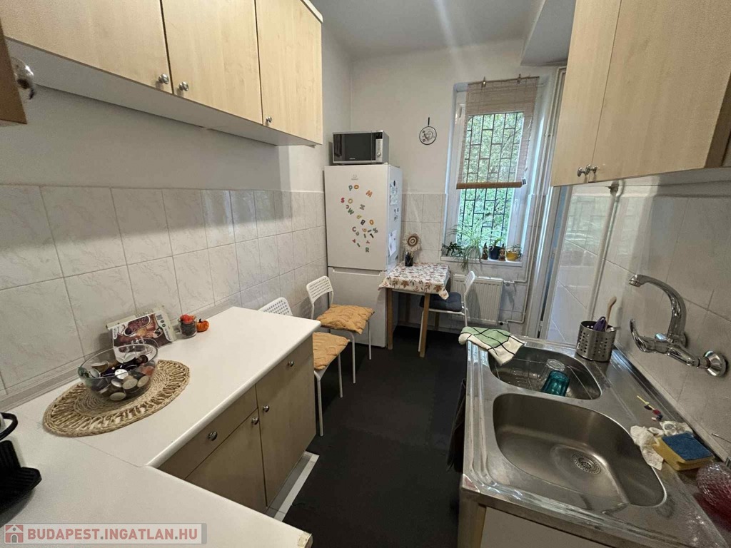 Eladó a XIV. kerületben, a Kalapács utcában, egy 3 emeletes lift nélküli tégla társasház 1.emeletén egy 50 m2-es,2 szobás, K-Ny-i fekvésű, konvektoros fűtéses, parkra néző, saját vízórával felszerelt, EGYEDI HANGULATÚ, jó állapotú lakás!