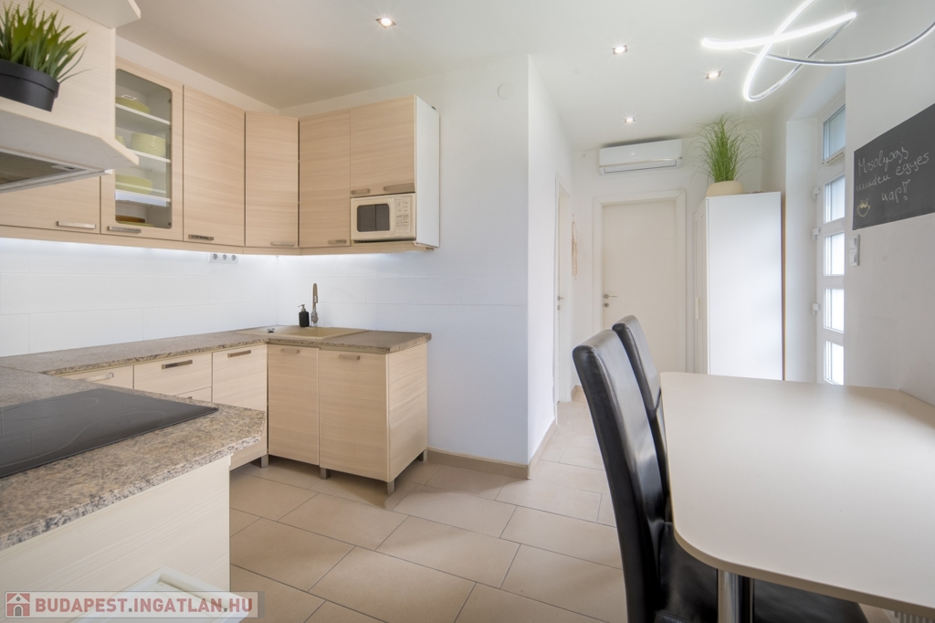 2 szobás, 42 m2-es, földszinti, teraszkapcsolatos lakás eladó Zuglóban, a Szatmár utca végéhez közeli szakaszon. Jó állapotú, MIKA kazánfűtéses, radiátoros. Minden egyedi mérésű, alacsony rezsijű. Az ár tartalmazza a képeken látható bútorokat is, így akár azonnali kiadásra is tökéletesen alkalmas. Az ingatlan szigetelt, nyílászárói műanyagok és redőnyösek, az előtérben klíma segíti a hőszabályozást.