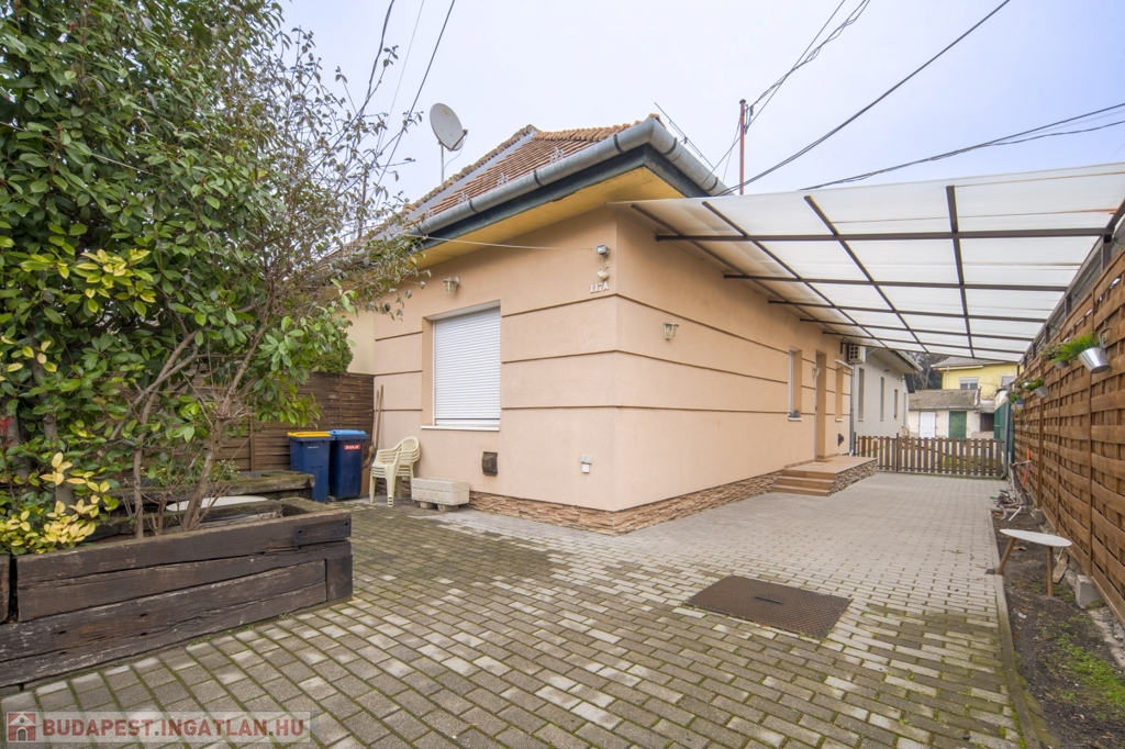 A ház 2 lakásos, a lakás előtt lévő, 22 m2-es kertrész az eladó lakásunkhoz tartozik és az ár részét képezi, így az a rész szabadon hasznosítható, a lakás melletti rész pedig osztatlan közös tulajdon a hátsó lakrész tulajdonosával, melyek megosztási szerződéssel vannak megosztva és elválasztva, így az ingatlan minden további nélkül hitelezhető.