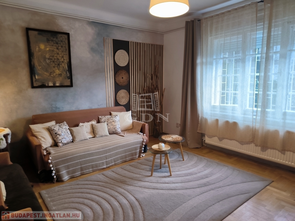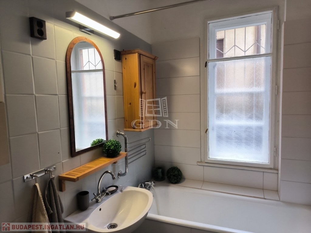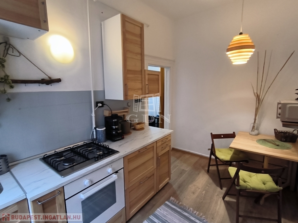 Az Amerikai út közelében eladó egy jó állapotú másfélszobás földszinti kertkapcsolatos lakás egy egy emeletes házban.
