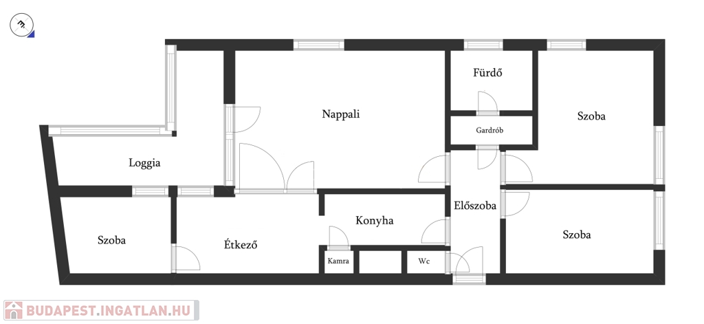 • 2 egész és 2 félszoba, praktikus étkezős kialakítás