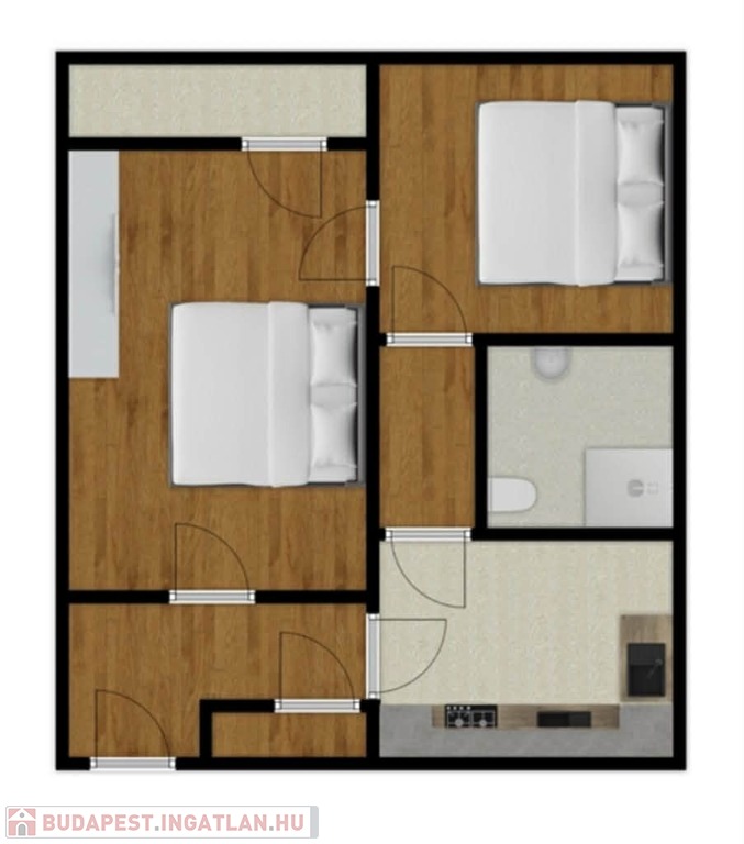 A tágas, világos lépcsőházból a lakásba lépve az előszobába érkezünk.Jobb oldalon található a szeparált, ablakos konyha, majd a kádas, szintén ablakos fürdőszoba következik. A konyhával szemben kis kamra, mellette praktikus gardróbszekrény került elhelyezésre. Az előszobából egyenesen továbbhaladva közelíthető meg a tágas nappali, amelyhez kellemes, délkeleti fekvésű loggia is kapcsolódik. A nappali jobb oldalán nyílik a kényelmes méretű hálószoba, amely a fürdőszobán keresztül az előszobából külön is megközelíthető.