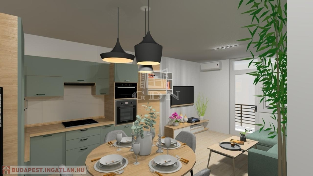 - gépesített konyha, beépített mikróval, sütővel, főzőlappal és hűtővel, szagelszívóval
