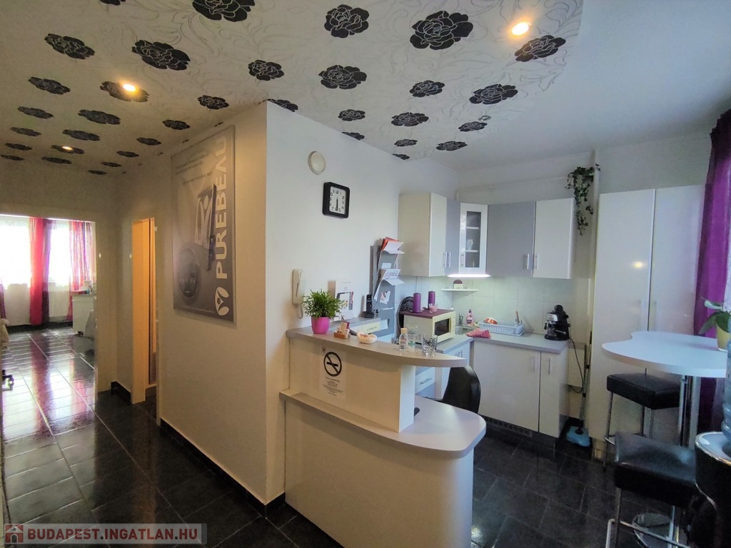 A lakásba a biztonsági bejárati ajtón juthatunk be. A nyílászárók mindenhol modern típusú műanyagra lettek cserélve. A tulajdonos az évek alatt több mindent felújított, klímával felszerelte az ingatlant. A szobák elrendezését tekintve kitűnő elosztásúak, a nappali DK-ti tájolású. Az ingatlan jelenleg szépségszalonnak lett kialakítva (akár gépesítve is átvehető), de lakásnak is alkalmas. Igényes járólap burkolattal lett kialakítva minden helyiség. A bejárattól az ablakos tágas 9,25 nm-es konyhába érkezünk meg. A 4,5 nm-es közlekedőn keresztül jutunk az ingatlan többi részébe. Az igényes járólap burkolatú előszobából jobbra a Wc és a 2,5 nm-es zuhanyzós fürdőt találjuk. Innen nyílik a 14 nm-es, nagy ablakos csempe burkolatú szoba nyílik. A közlekedőn egyenesen haladva a szintén járólap burkolatú, több mint 22 nm-es nappaliba lépünk, innen nyílik a 13 nm-es kisebb szintén járólap burkolatú szoba, ami eredetileg erkélyes volt, de beépítették. Az üzlethelyiség/lakás nagyon szép állapotú, többféle képpen át lehet alakítani. A lakás a D-i, DK-i fekvése miatt kedvező fényviszonyok jellemzik.