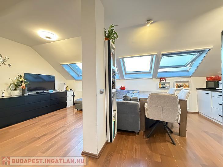 Eladó Zugló, Alsórákos csendes részén, a Gervay utcában egy belső kétszintes, klimatizált lakás egy mindössze 6 lakásos, rendezett társasházban.