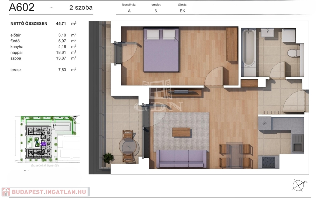 | Cím: | Erzsébet Residence A602 |