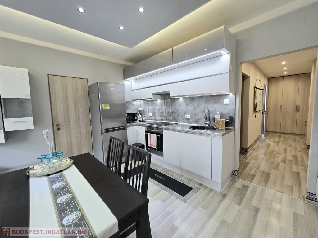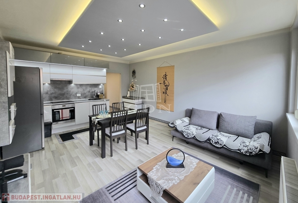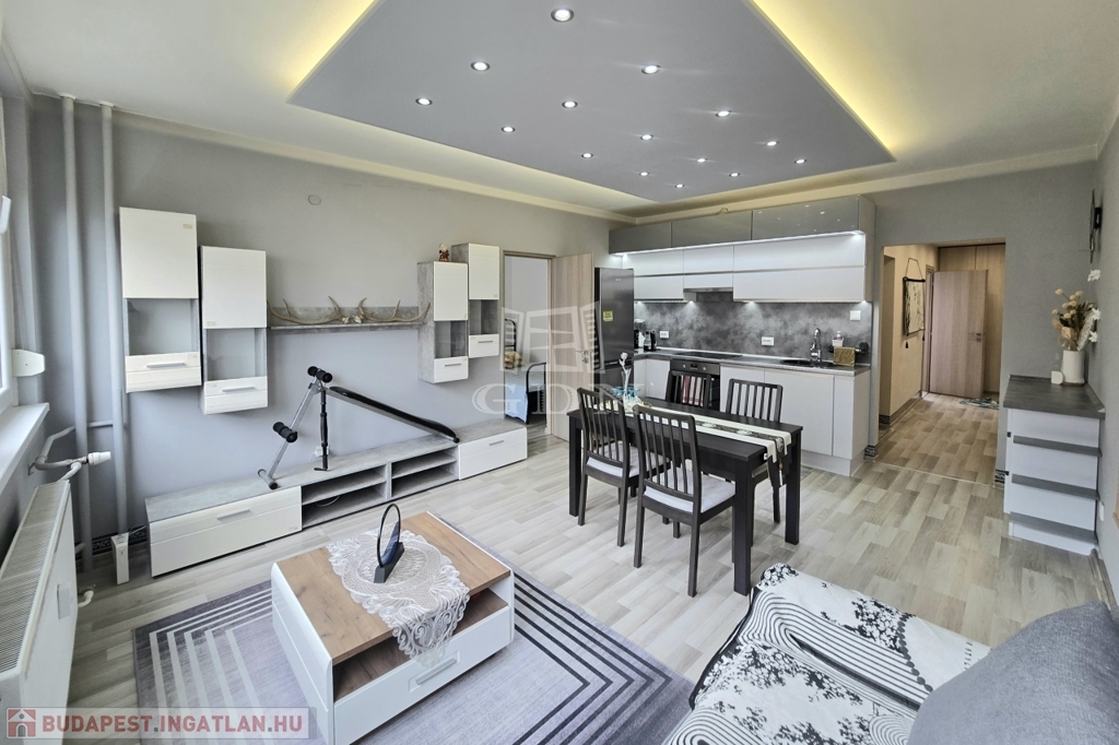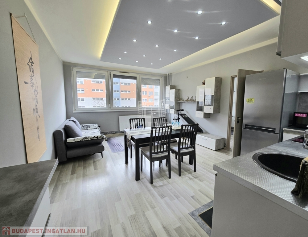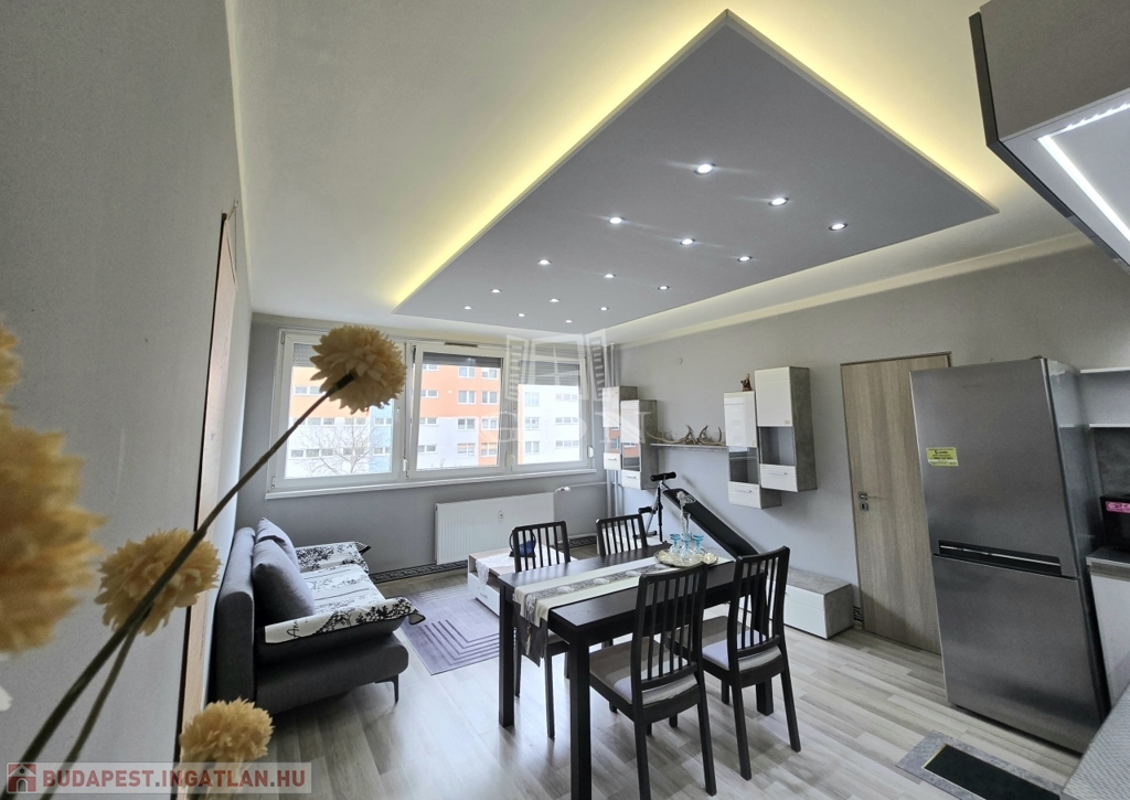 XIV. kerületben, a Füredi lakótelepen eladó egy 70 m2-es, beépített LOGGIÁS (2 m2), 3 szobás+…1 félszobás, CSENDES, VILÁGOS, FELÚJÍTOTT, panorámás lakás. Tulajdoni lapon 3 szobás, de a konyha bekerült a nappaliba és így egy fél szobával bővült a lakás.