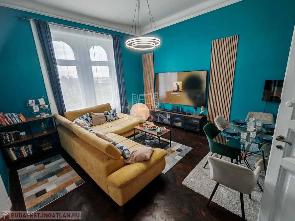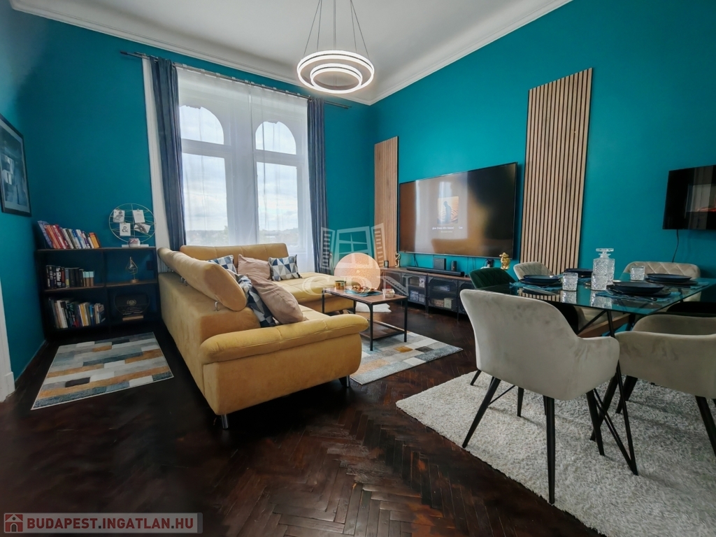 Az ingatlan egy 1910-ben épült, historizáló–eklektikus stílusjegyeket hordozó társasházban található, amely szépen őrzi a klasszikus polgári építészet hangulatát. A lakás különleges atmoszféráját a 3,6 méteres belmagasság, a tágas, világos terek, valamint a polgári lakásokra jellemző elegáns arányok adják, amelyeket a felújítás során fiatalos dizájnnal ötvöztek.