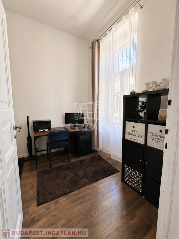 A délkeleti fekvésnek köszönhetően a lakás kellemesen világos, a nappali és az egyik hálószoba a Hungária körútra néz. Az ingatlan elrendezése praktikus és jól élhető: nappali, két hálószoba, konyha, fürdőszoba, kamra, előszoba és folyosó helyiségekből áll, így családoknak, pároknak vagy akár otthoni munkavégzéshez is kiváló választás. A nagy belmagasságnak köszönhetően a lakás igény szerint galériázható, ami tovább növelheti a hasznos életteret.