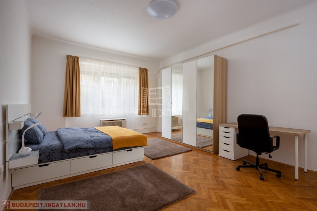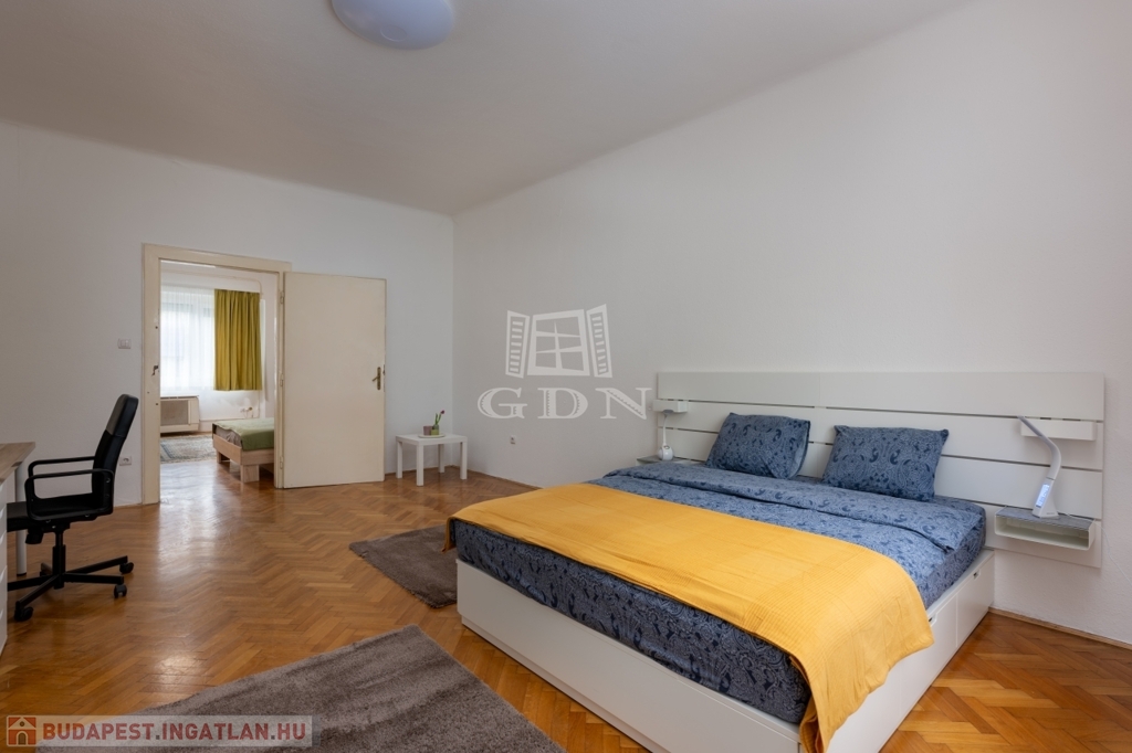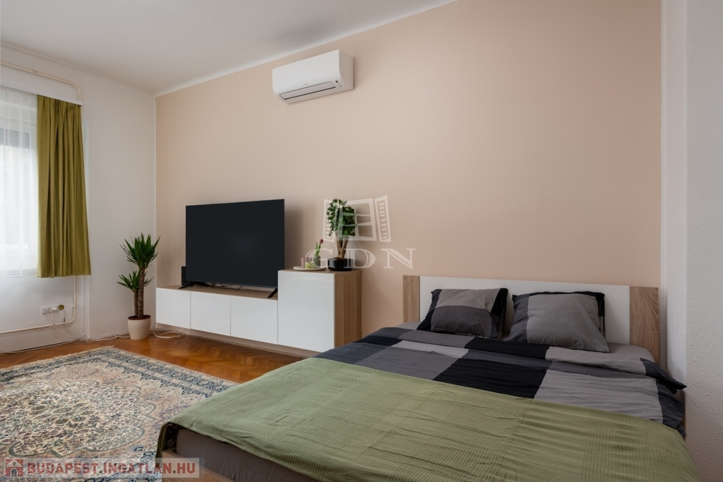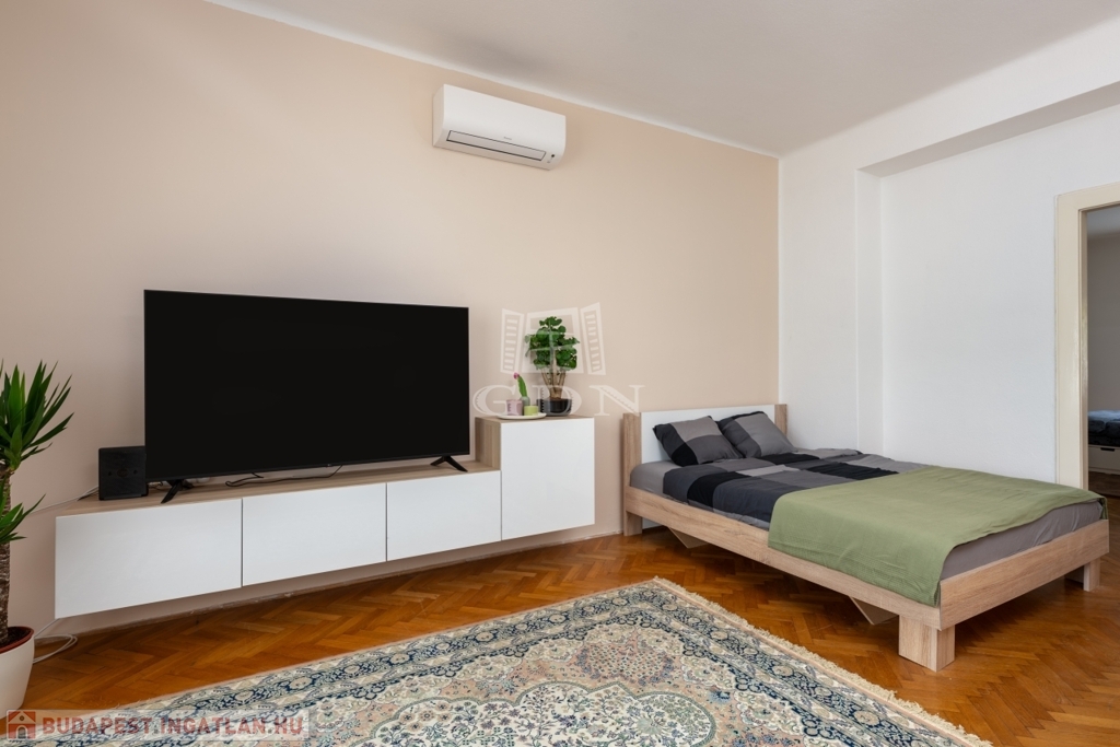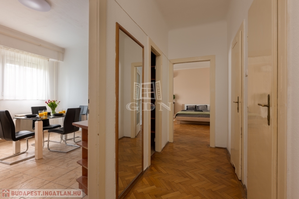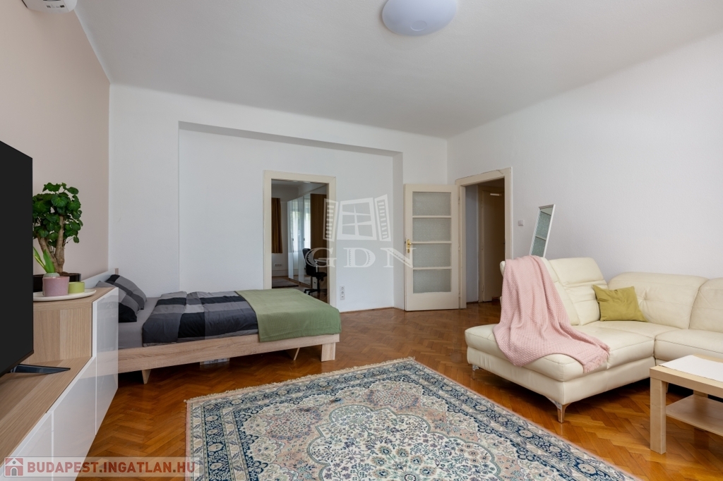 XIV. kerület központi elhelyezkedésű részén, kötött és szabadpályás tömegközlekedési eszközök, üzletek, közintézmények és egyéb szolgáltatások gyűrűjében, kis lakásszámú, rendezett állapotú, liftes társasházban, eladásra kínálok egy 81 m2-es, ablakos konyhás, jelenleg két külön és egymásból is nyíló szobás (könnyen 3 szobássá alakítható) műanyag-redőnyös nyílászárókkal szerelt, klimatizált lakást.