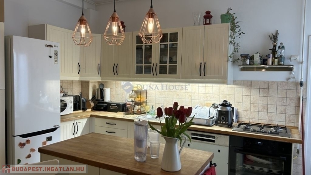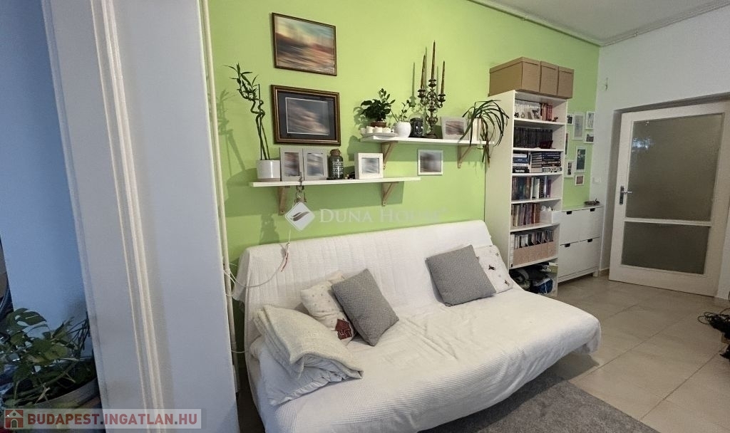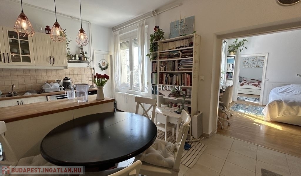 A napfényben fürdőző lakás zöld kertre néző, praktikus kialakítású, tágas terekkel, megkímélt állapotban. Az amerikai konyhás nappali mellett 2 szoba, külön fürdő és toalett, egy kamra és előszoba alkotja.