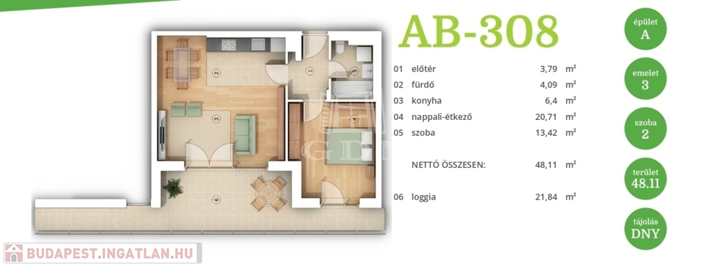 Ez a lakás nappali+2 hálós, 64nm alapterületű és tartozik hozzá egy 18nm-es terasz is.