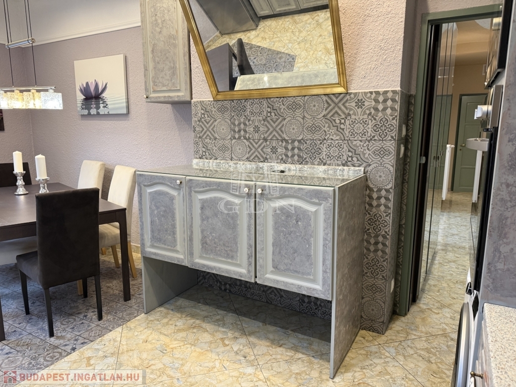 A lakás teljes felszereltséggel, komplett gépesítéssel és bútorzattal együtt eladó.