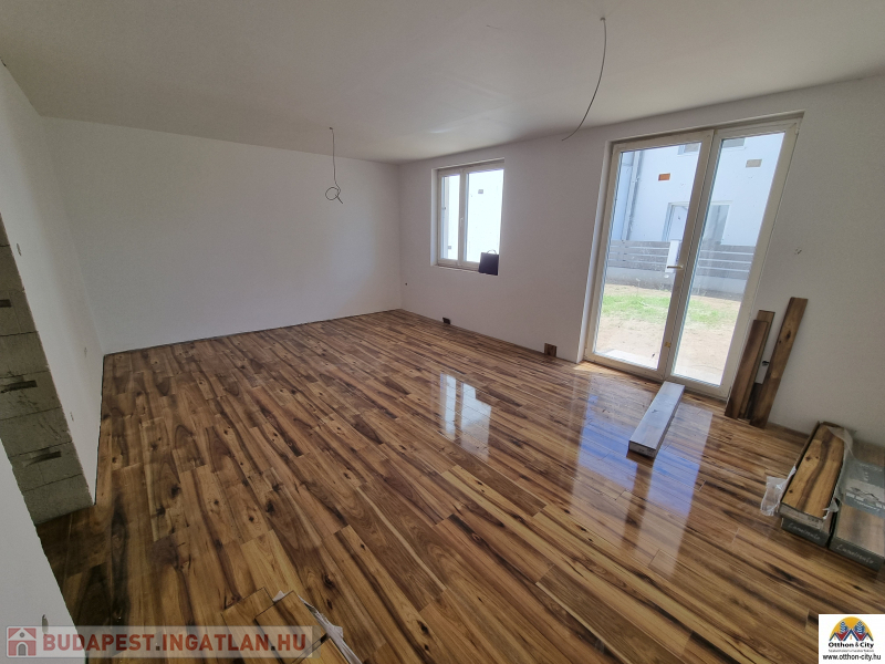 XIX.kertvárosban eladó egy 140 nm-es belső kétszintes,4 szobás,duplakomfortos, garázsos kertkapcsolatos új lakás,a kert mérete 80 nm.Az ingatlan egy négylakásos társasház egyik lakása,egy nagy teleken.