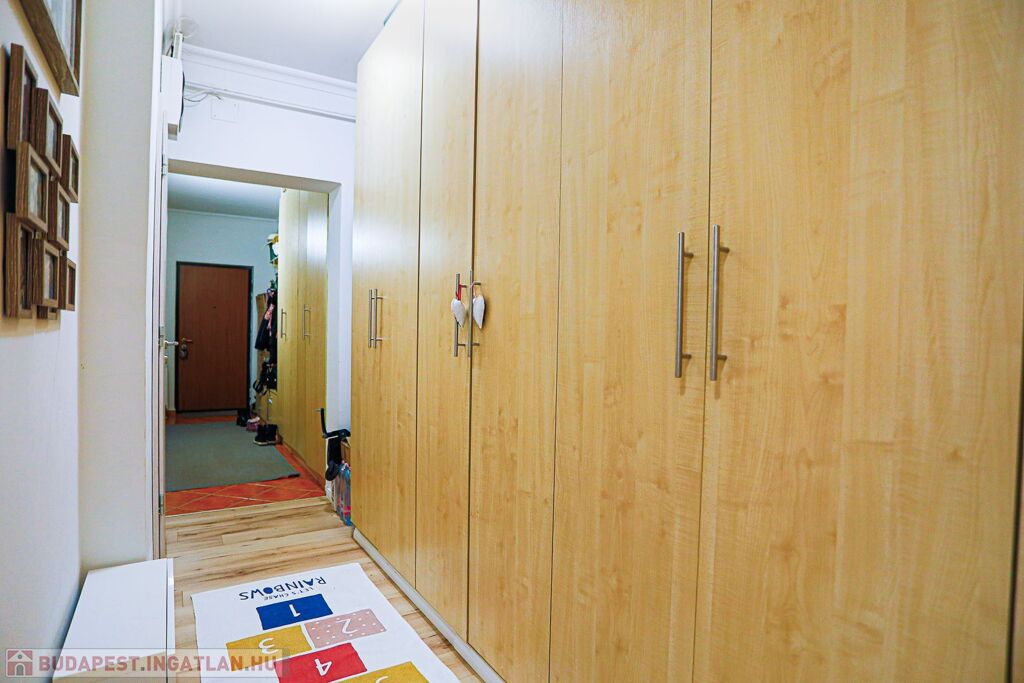 A FÜRDŐ ÉS A WC KÜLÖN helyezkedik el. Tágas előtere NAGYMÉRETŰ SZERKÉNYEKKEL ELLÁTOTT, amely ideális pakolófelületet biztosít – mindezek a vételár részét képezik.