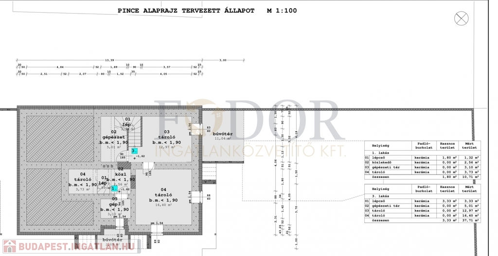 • Extrák: saját pincerész + lépcsőház + közlekedő + tároló (össz.: 10,71 m²)