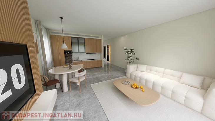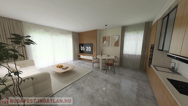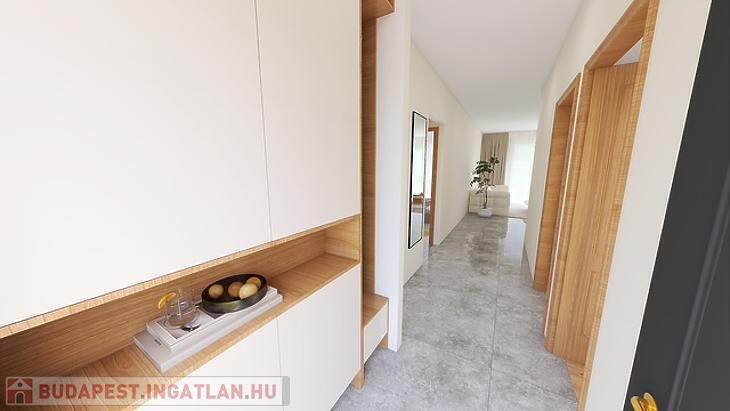 Egy tágas amerikai konyhás nappali, 3 háló, fürdőszoba és egy 9 m2-es erkély kerül kialakításra.