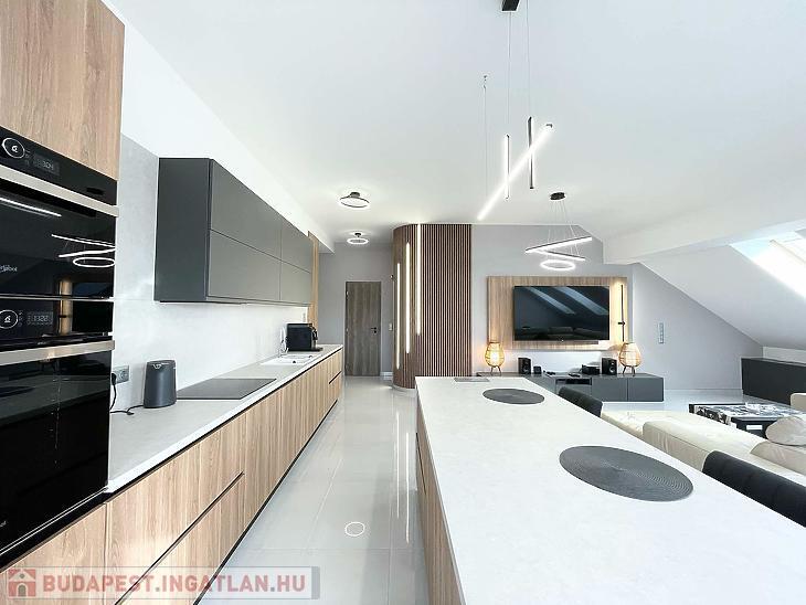 XV. KERÜLETBEN: RÁKOSPALOTÁN, ÚJSZERŰ, 2025-BEN ÉPÜLT, BRT. 157 M2, AMERIKAI KONYHÁS NAPPALIS, 3 SZOBÁS, DUPLAKOMFORTOS, EGYEDI PENTHOUSE LAKÁS, 2 TERASSZAL, TÁROLÓVAL.