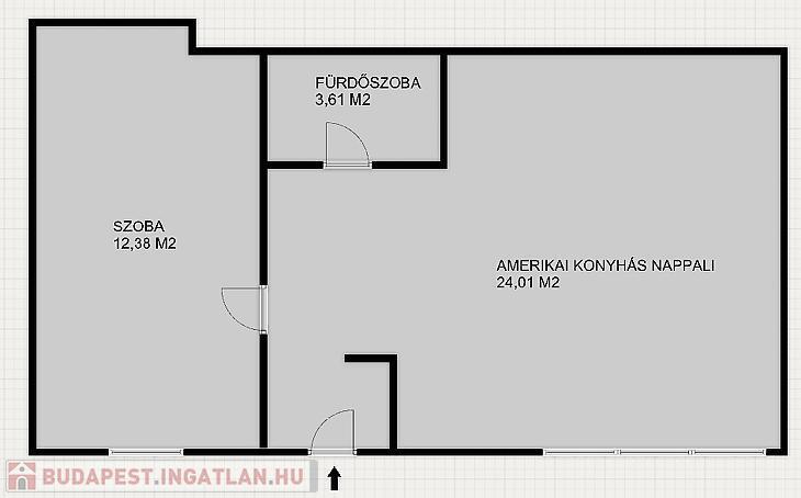 A lakásban tágas étkezős amerikai konyhás nappali, szoba, fürdőszoba kerül kialakításra.