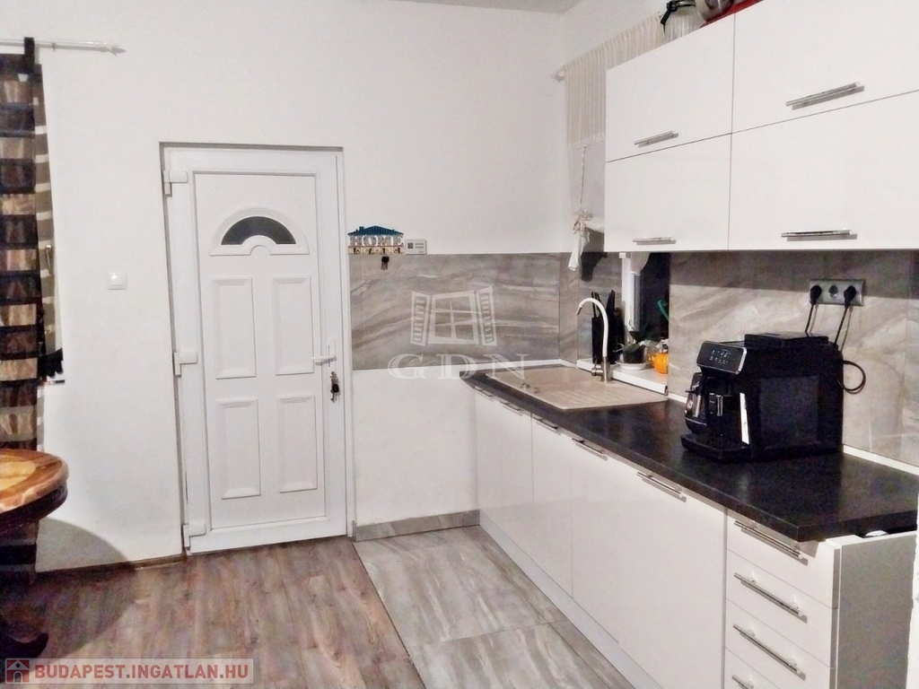 A XV. kerület csendes, kertvárosi részén eladó egy 44 nm-es házrész, amely egy használati megosztási szerződés alapján jogilag leválasztott, három külön bejáratú lakásból álló épület része.
